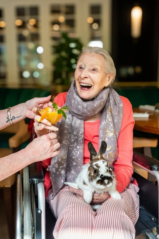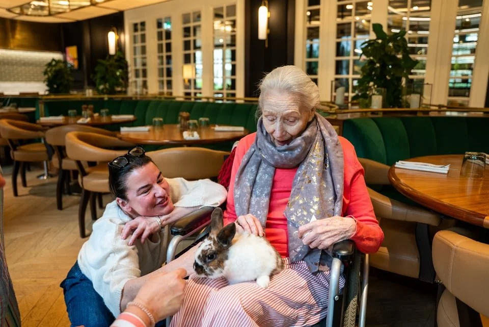 Rabbits were chosen for Hoppy Hour because of their gentle temperament and quiet nature. Their soft, tactile presence can be especially comforting for older people, including those living with dementia or experiencing loneliness.